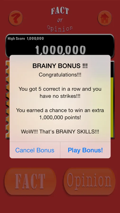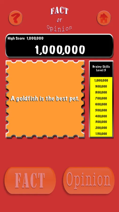 This app was created, developed and written by a certified Speech-Language Pathologist (SLP) with many years of hands on experience in a variety of settings from daycares, schools, and preschools with a large variety of both younger and older school age children, both typically developing and special needs children. After seeing the difficulties and struggles with answering a variety of questions, the great need for a unique, motivating, fun, and exciting way to help improve these skills was obvious. There is a need to combine learning with fun in order to improve and increase motivation when grasping concepts such as fact or opinion. As the questions increase in complexity, some find it challenging to answer these questions. The game has been designed in such a way to give children examples to practice everyday scenarios and situations. This app can also be used for beginning readers practicing reading and comprehension skills, as well as middle and high school special needs students that need continued practice of comprehension and in a motivating enjoyable way, keeping them entertained and excited about getting challenged. Also, there are Brainy Bonuses that at times are tricky to teach, such as: inferencing, predicting, reasoning, problem solving, logic, cognitive skills, before and after, and more complex reading comprehension.