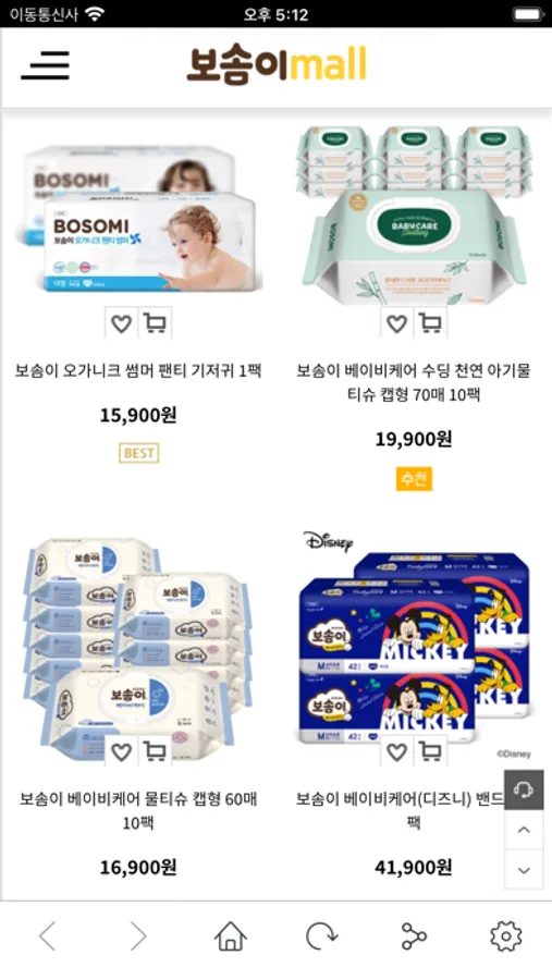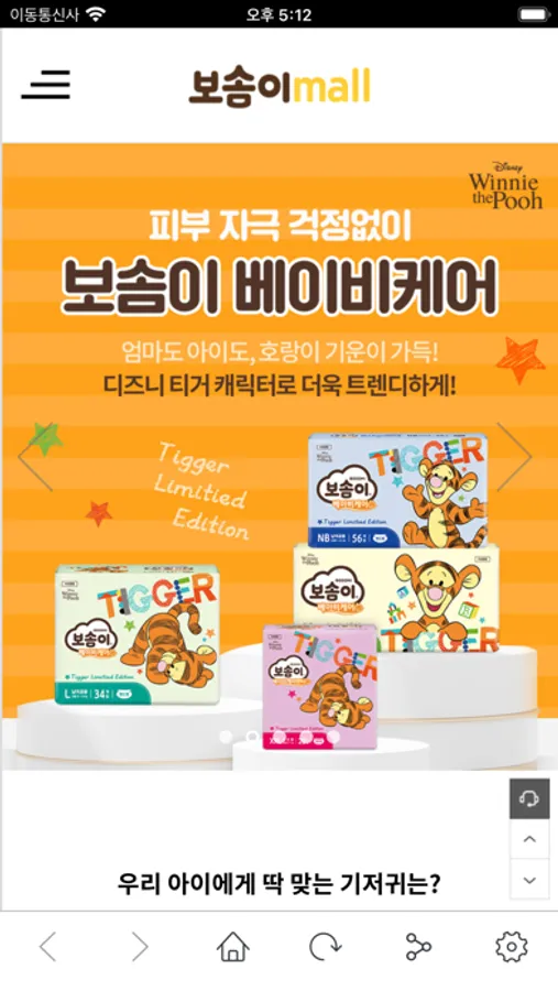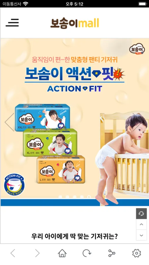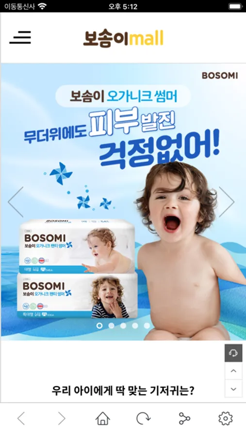 - 보솜이 기저귀 : 리얼코튼, 천연코튼, 디오가닉, 소프트 슬림, 액티브 팬티