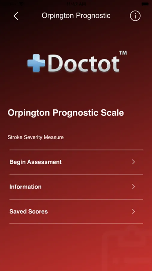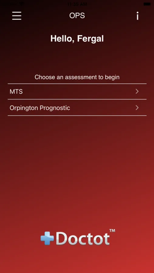 Akin to other Doctot products, the two gold standard care pathways within this App (i.e. the OPS and the Abbreviated Mental Test Score) are presented in a "wizard" format, which quickly and intuitively guides the user through the various steps that are involved.