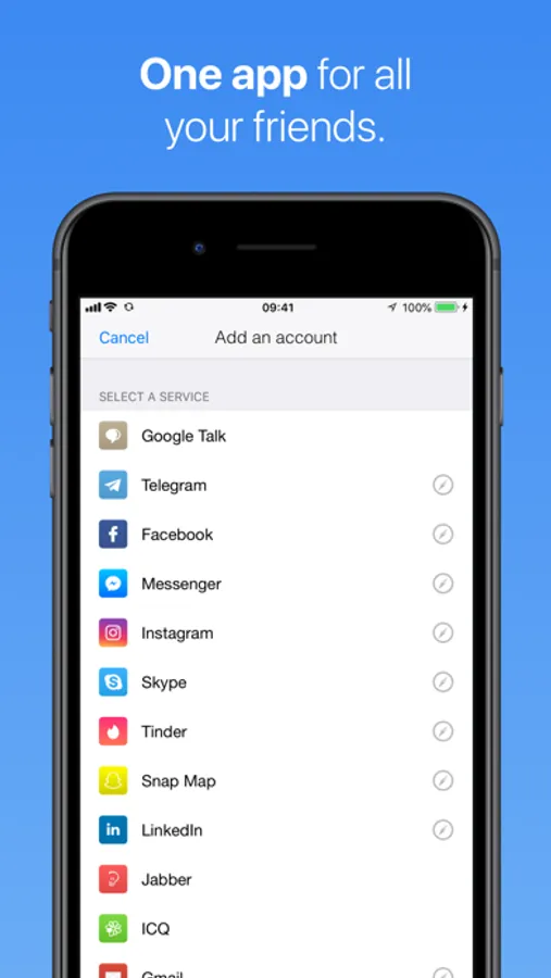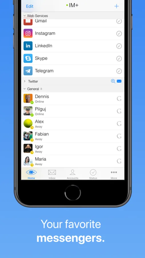 Chat on Telegram, Google Talk and Messenger while checking your Facebook and Twitter feeds and swiping on Tinder. IM+ supports multiple accounts per service and saves you a lot of time and space on your iPhone.