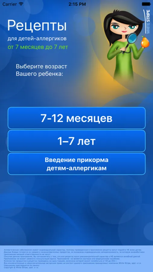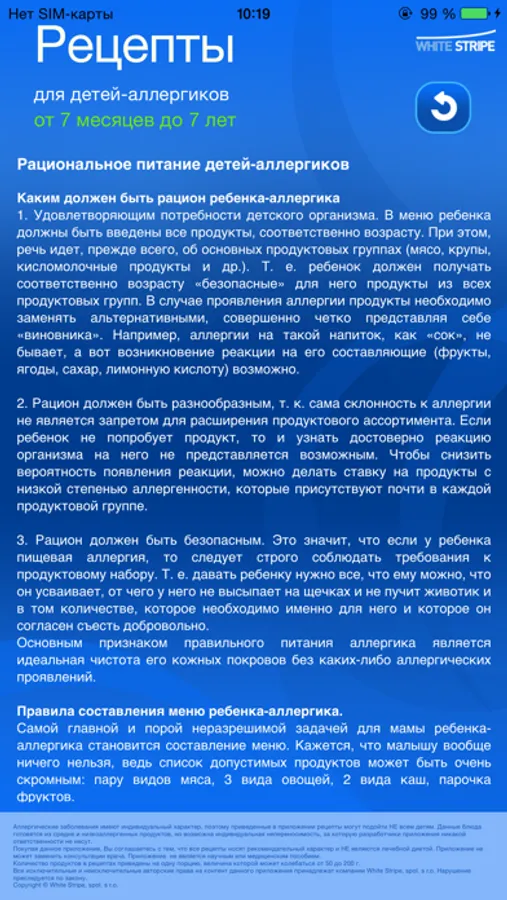 Приложение создано специально для того, чтобы помочь родителям составлять ежедневно максимально гипоаллергенное меню для детей, страдающих от пищевой аллергии.