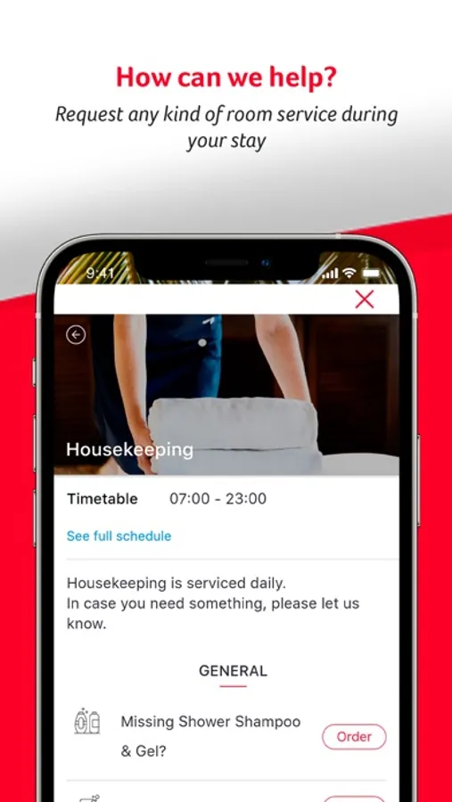 - Book tables at most of our restaurants and spa treatments, request room cleaning or minibar refills...
