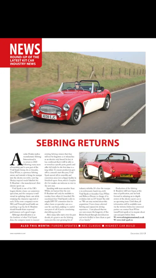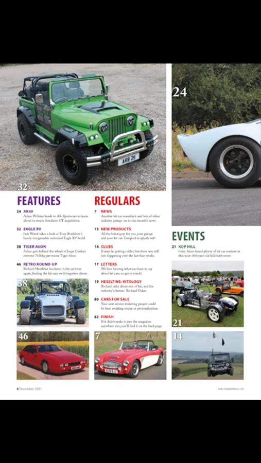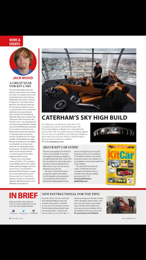 Complete Kit Car brings you the most exciting cars you can build at home. Every issue has reviews on the latest cars, exciting drives, extensive coverage of events around the UK, features from the USA and elsewhere, plus a huge technical section with readers’ builds, technical advice and ‘how to’ features to keep you moving with your own project. It’s the only source you’ll need for your kit car satisfaction!