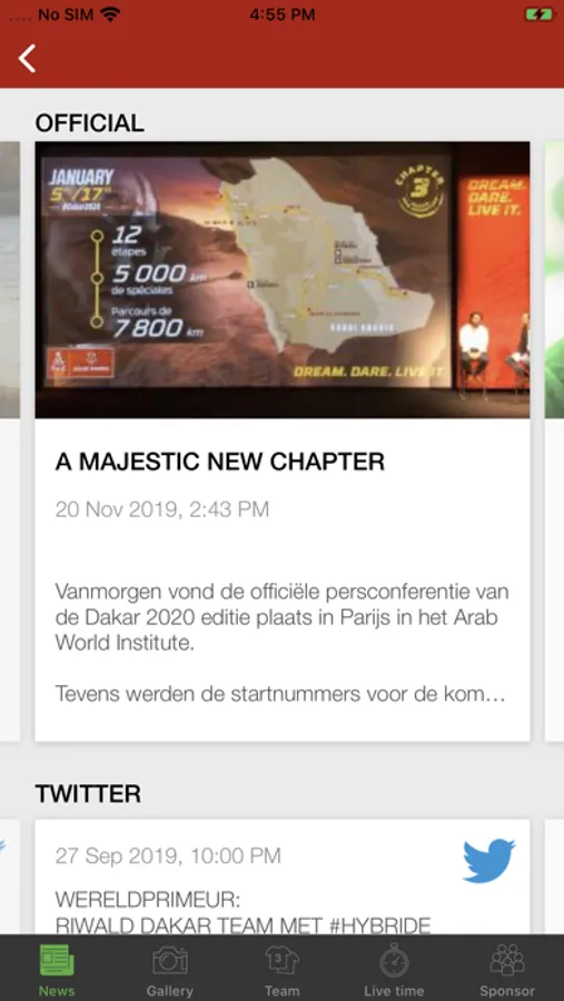 Deze app bevat het laatste nieuws van het team én de meest accurate en snelste live-timing van alle deelnemers in de Dakar Rally.