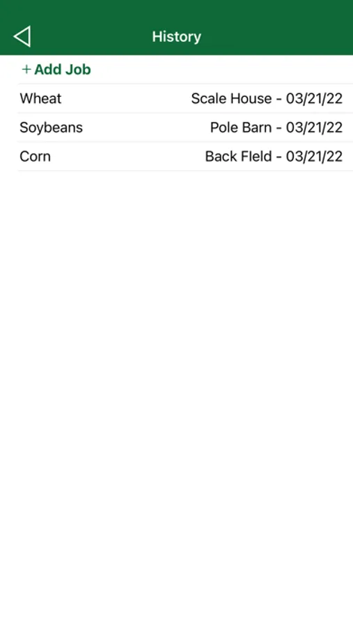 -- Create jobs for tracking multiple loads, such as in a bin, to help determine average moisture levels. Save to history for reference and adding additional loads later.