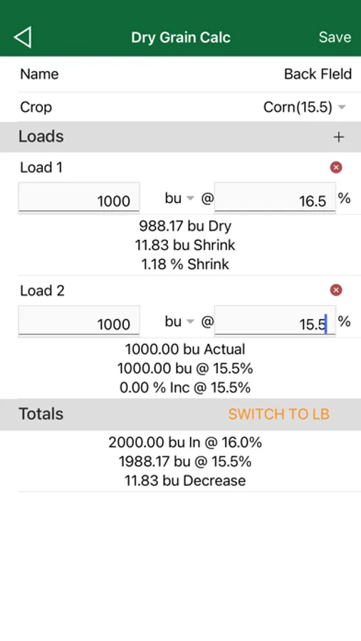 -- Dry Grain Calculator will compute the overage or shrinkage of the grain based on the optimal moisture percentage.