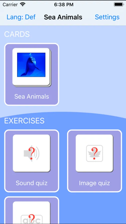 Learn with your child marine animals names with set of 24 colorful cards and three kind of quizzes. The cards are specially designed for children up to 5 years. Each card includes a picture, text and pronunciation in eight languages. This allows to use these cards for learning languages.