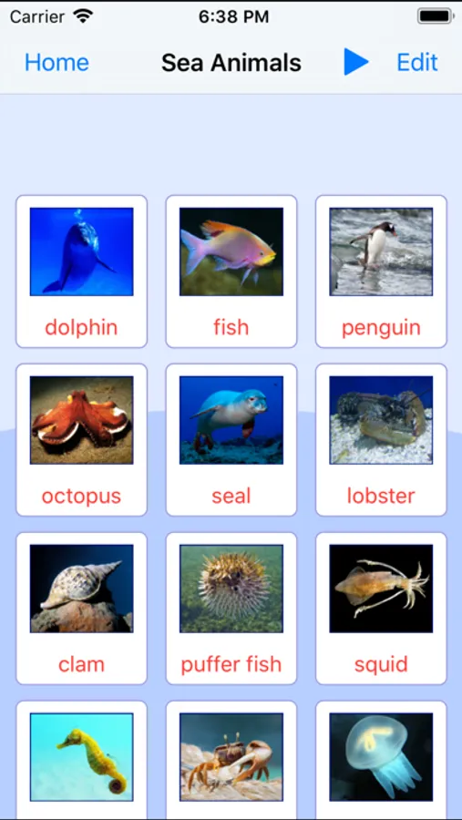 You can also personalize any card, change an inscription, and record your own voice. To do this, press “Change” button on the cards list screen, then press the blue “Edit” button which will pop up in the upper right corner of each card.