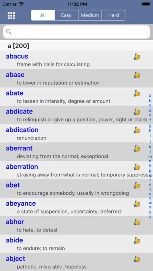 - customize scope of words in the quiz i.e. by alphabets or difficulty level etc.