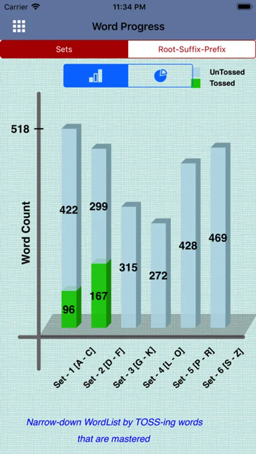 - Narrow down wordlist by TOSS-ing words that are mastered.