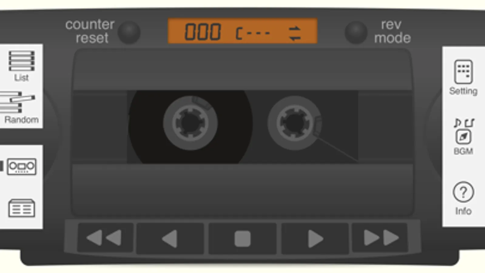 2: Before you close this app, change to BGM mode - it plays blank time after the last song, plays machine sound at end of side, obeys setting of auto-reverse. To change to BGM mode, you tap the button(drawn browser and musical notes) in the bottom while playing a song. In case setting of auto-reverse is endless, it plays whole songs a few times.