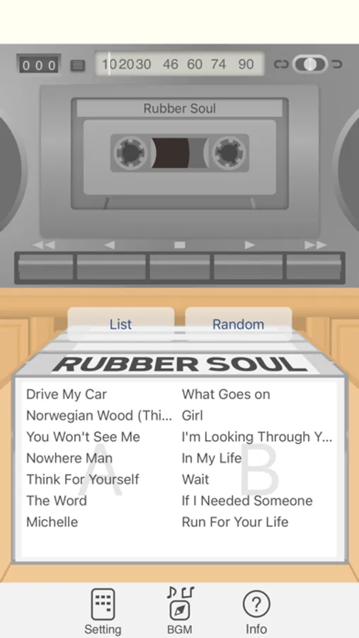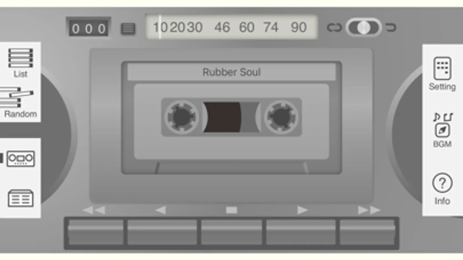 For example, changing rotation speed of reels based on tape amount, animation of wrapping end of the tape to reels, the player with counter and auto reversing, a sound of operation, song list like cassette index cards, lettering album title.