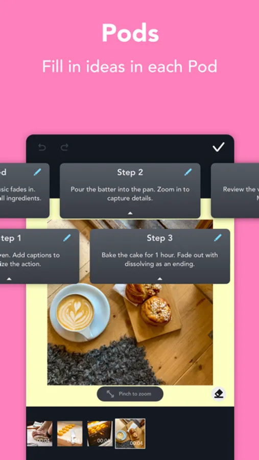 Create storyboard, make video content, and fill in the content into “Pods”. Write-on Video not only makes video editing fun and efficient, but also empowers you to organize your video production. Plan your video production with the app, and edit videos with its rich features, including captions, animated stickers, speed controller, and more. You can choose to export projects as videos or PDF storyboards. You are just one app away from creating videos like professional YouTubers.