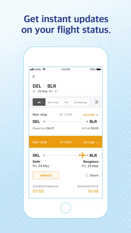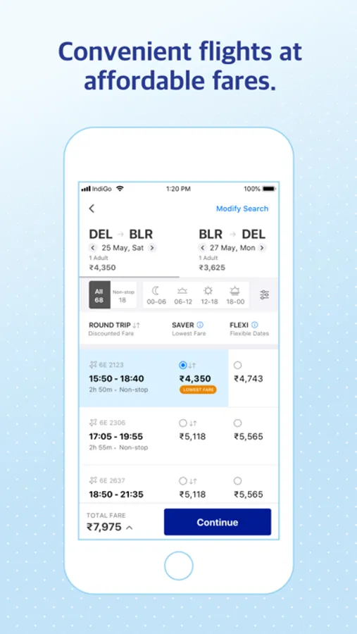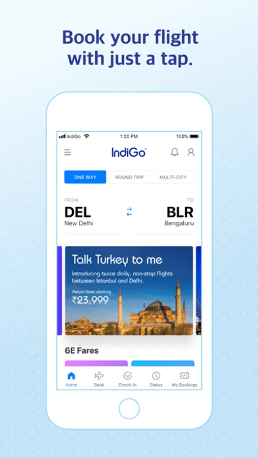 • With more than 1,800 daily flights, book cheap flight tickets to your desired destination using the IndiGo mobile app.