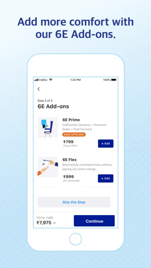 • Choose 6E Prime to get offers on seat, snack combo, and more.