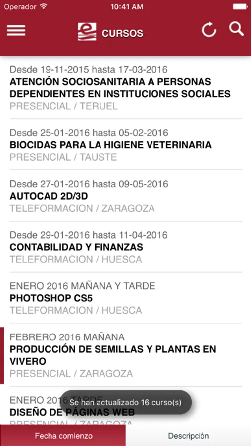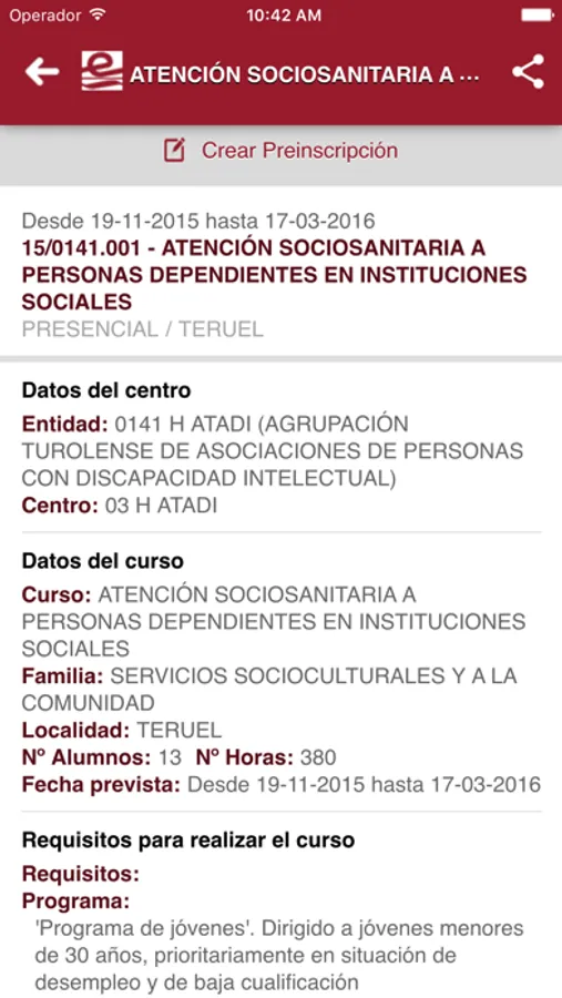 - Cursos de formación: Podrá comprobar la oferta formativa vigente,a futuro podrá iniciar el proceso de pre-inscripción y recibir notificaciones relacionadas con sus solicitudes.