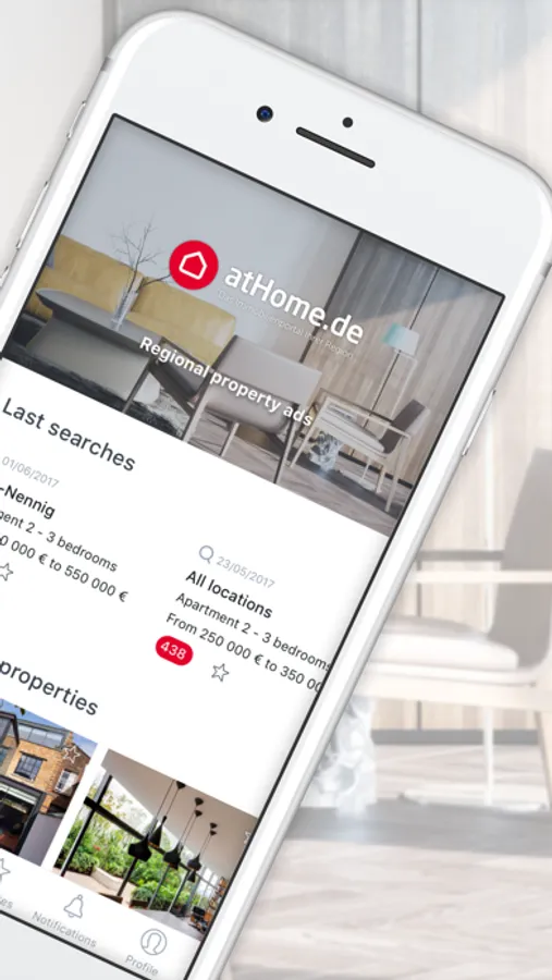 ▷ Receive notification whenever a new apartment or house matching your search criteria is published on atHome.