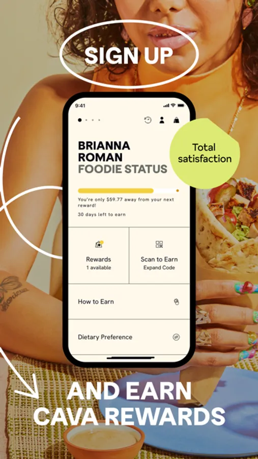 Sign up and Earn CAVA Rewards – Sign up and earn rewards on all orders placed through the app or when you scan your QR code in store.