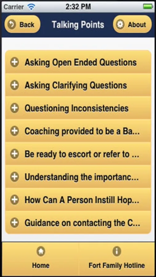 - The “Talking Points” tab provides helpful tools and tips to help you be a better listener for someone who just needs a friend to talk to.
