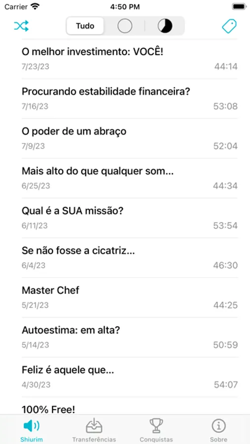 · Arquivo: todos os shiurim, com a opção de filtrar/navegar por uma ou mais categorias. Saiba quais shiurim você já começou, quais já terminou, e quais não ouviu ainda.