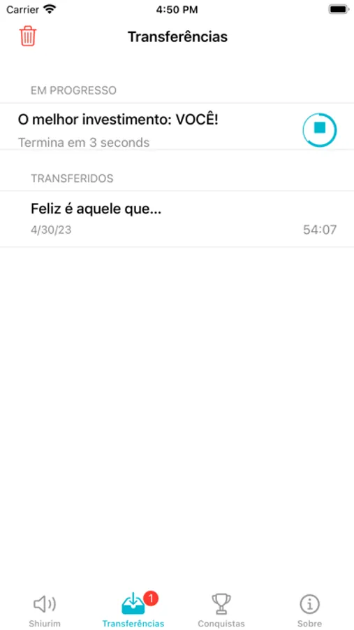 · Transferências: baixe os shiurim ou faça o streaming para ouvir. Apaque com um toque os shiurim transferidos já terminados.