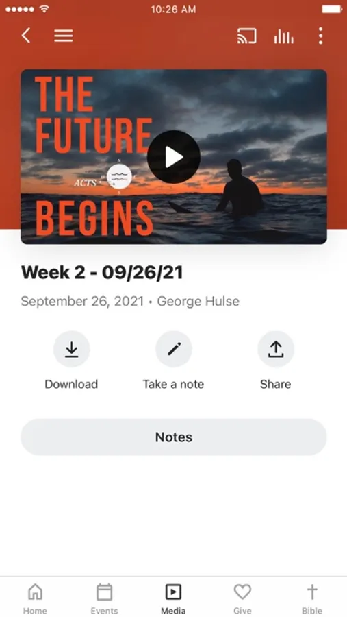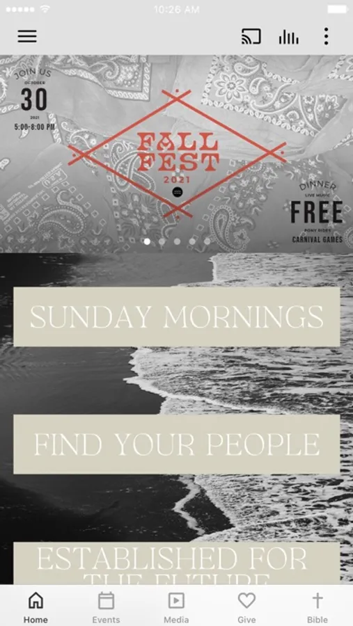 Take advantage of the Sunday button every week to engage in our service with weekend activities, sermon notes, and sign up features built right in! We've also given you an all new in app digital bulletin!