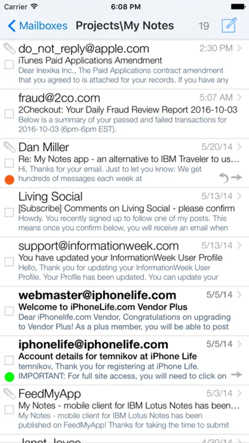 * IBM NOTES SPECIFIC FEATURES – encrypted and signed messages support, follow-up flags, full-text search through all documents in databases, etc.