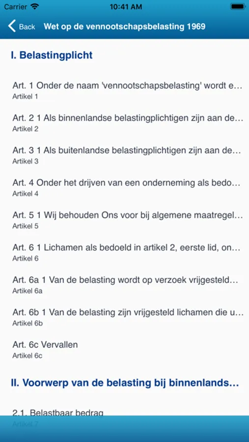 - Het is mogelijk om binnen wetten te zoeken, favorieten op te slaan en notities aan te maken.
