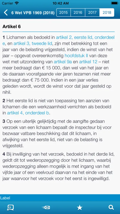 - Naast de actuele wetteksten zijn ook de drie voorgaande jaren altijd direct beschikbaar; daarvoor is geen internetverbinding vereist.