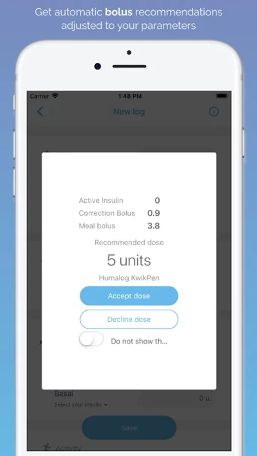 -Bolus calculator: with your insulin-to-carb ratio, insulin sensitivity factor, and glycemic targets. receive insulin dose recommendations.
