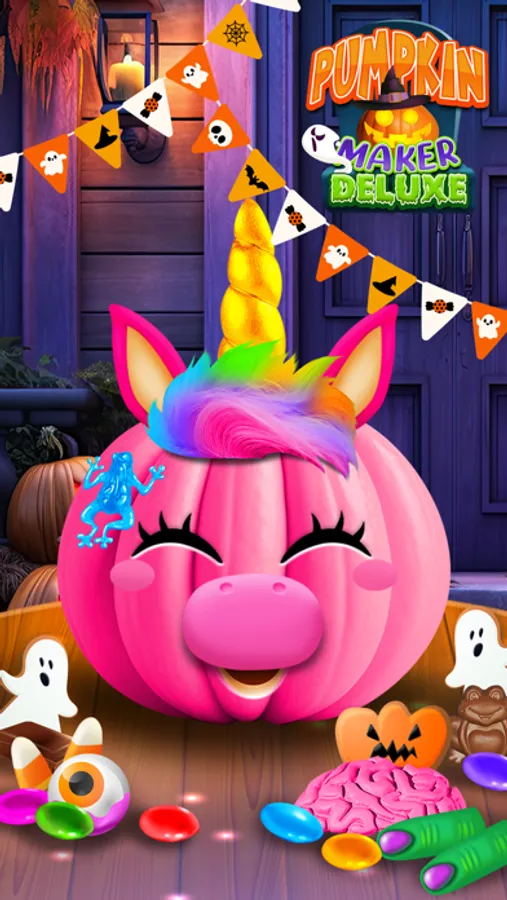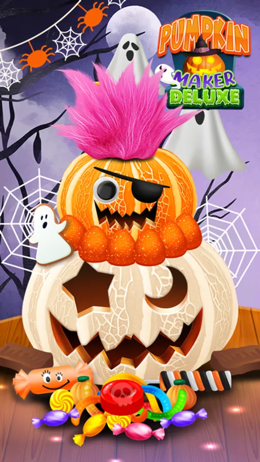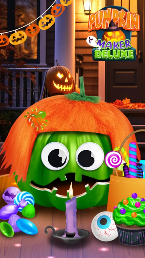 Make Spooky and Fun Pumpkin creations and express your Ghoulish side. 300+ Halloween Themed Items! Create endless Halloween scenes with 20 Backgrounds, 50+ Pumpkin Shapes and Colors, Scary Faces, Glowing Eyes and Mouths, Funny Animal Noses, Glasses, Stems, Wigs, Candy, and Spooky Décor.