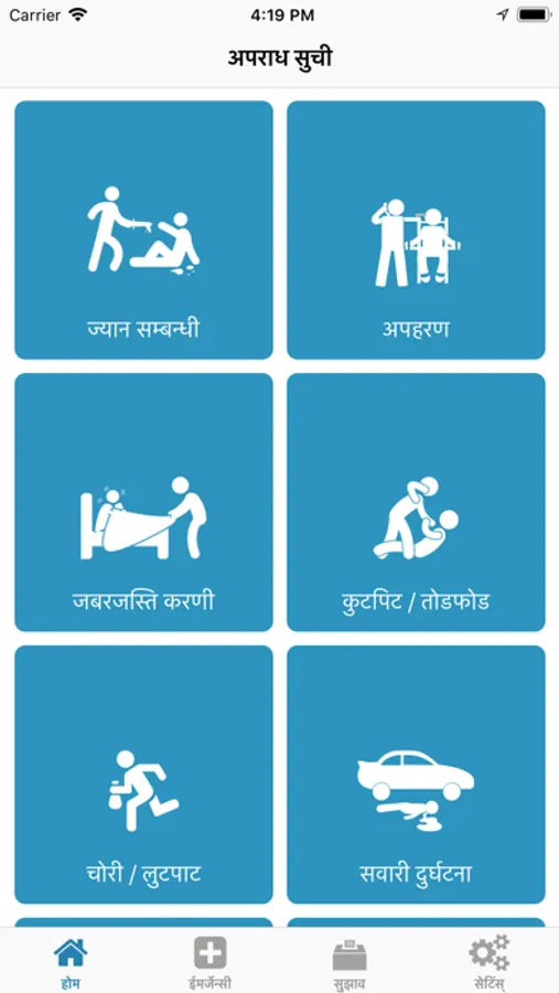 You can report different kind of Crimes like Hit & Run, Robbery, Assault, Kidnapping. And if you are not sure of the crime type then you can report a crime as a General Crime. Thats not all, we have a cool feature if you are the victim and you need help from Police you can send / report an emergency report.