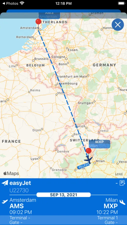 App lets you know if your flights delayed or cancelled and gives you the tools needed to quickly find an alternate flight from Milan.