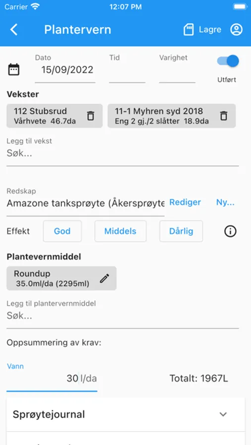 Du kan også registrere nye jordprøver, rapportere inn arbeid og ta koordinatfestede bilder med kameraet på telefonen. Du kan også se dine gjødslingsplaner, verdier på jordprøver og hva slags arbeidsoperasjoner som har blitt utført på et punkt på kartet.