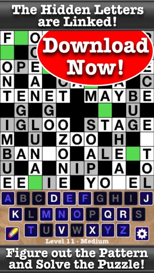 Crossword Jewels™ challenges your mind to deduce the connections among the hidden letters in a crossword grid!