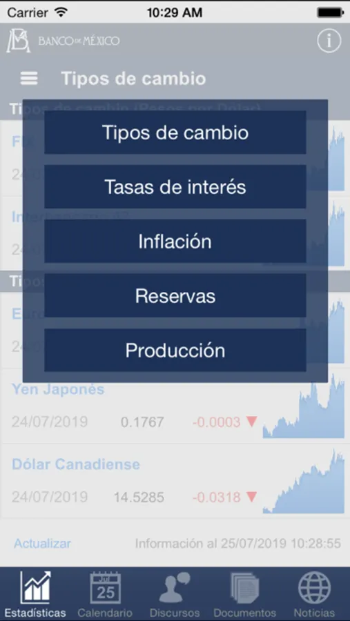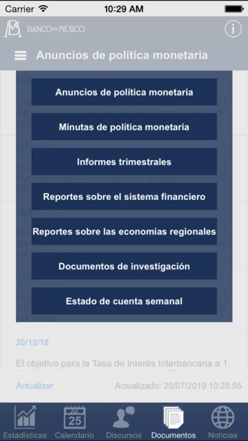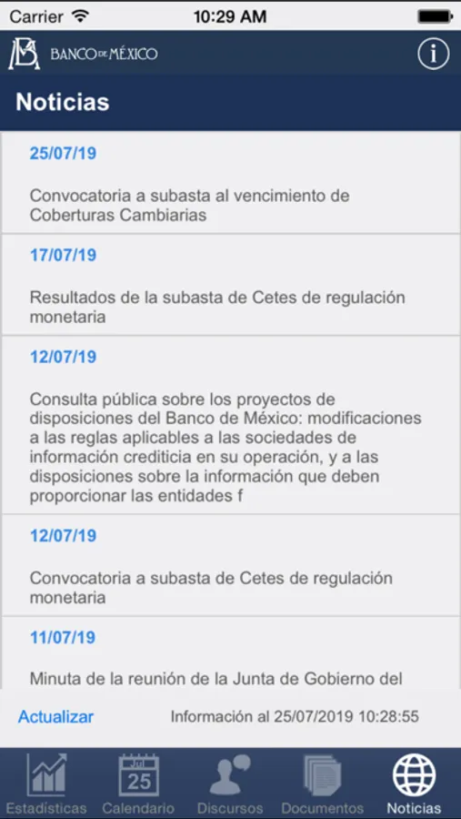 Esta aplicación permite consultar los principales indicadores económicos, las noticias más recientes, y los documentos publicados por el Banco de México.