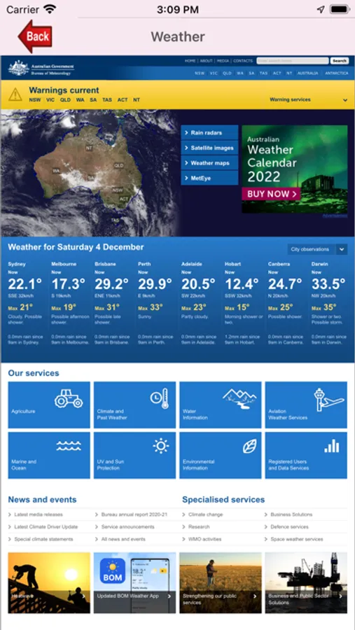 Weather - This website shows the 7-day forecast on the current weather conditions in Melbourne.