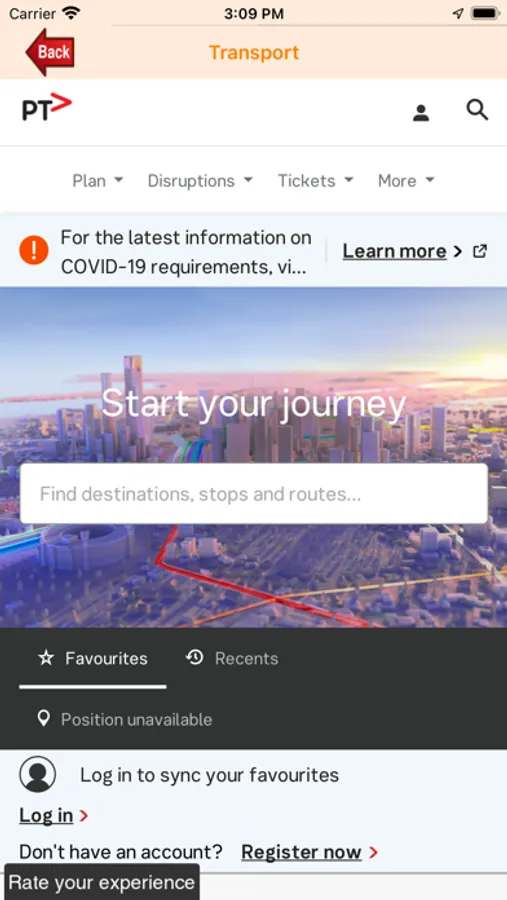 Transport - This takes you to the Public Victoria Transport website where you can obtain information on buses/trains/trams timetables, fares and tickets, journey planner, using public transport, etc.