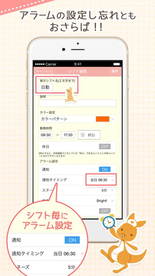 ◆シフトと連動したアラーム機能