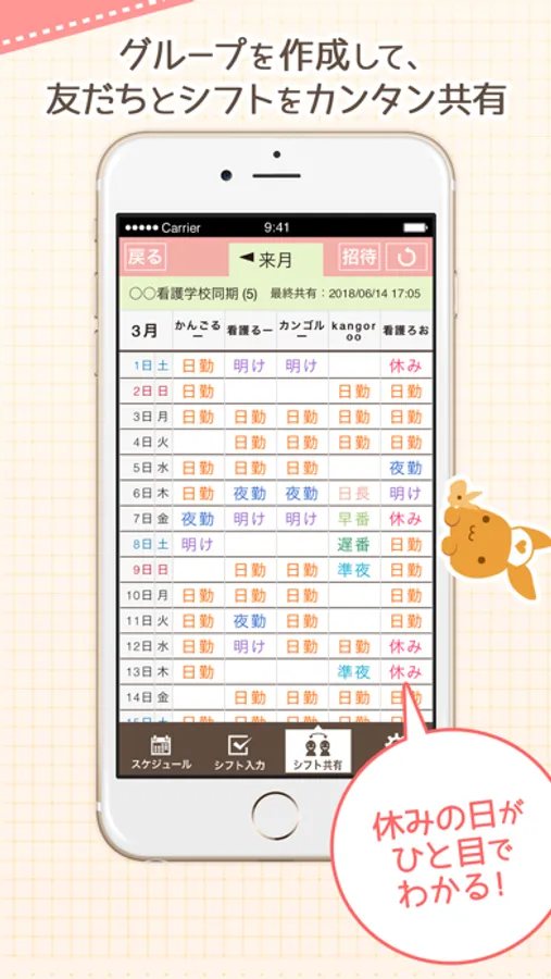 グループを作成し、お互いのシフトをワンタッチで共有!