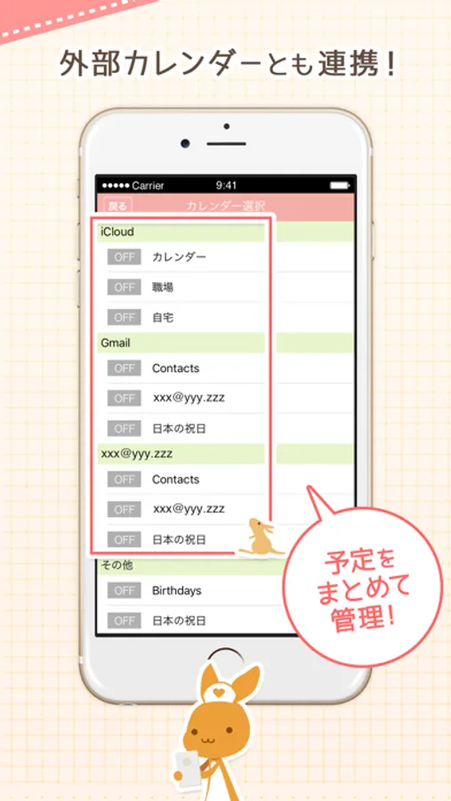 他のカレンダーとの連携も簡単に設定。