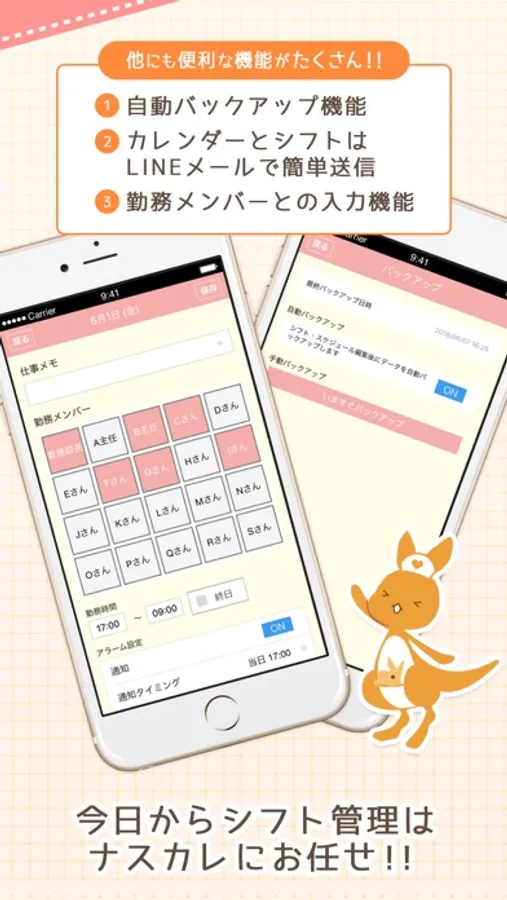 ※シフト共有機能とバックアップ機能のご利用には、アカウントの登録が必要です。