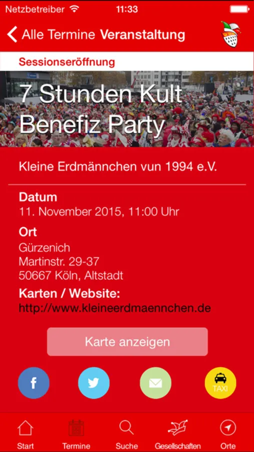 Und wenn Sie Ihre Freunde einladen wollen, schicken Sie aus der App eine Mail oder Posten es auf Facebook oder Twitter. AppSolut jeck – Die Kölner Karnevalstermine der Session 2023/2024!