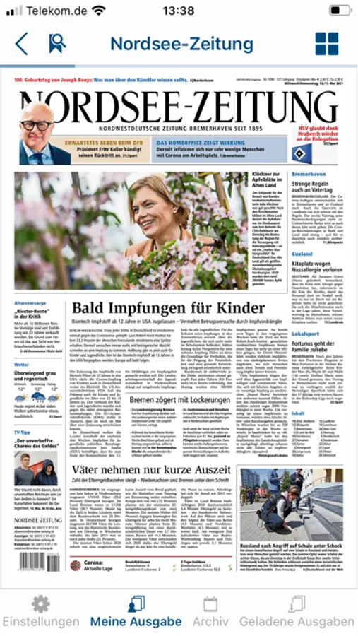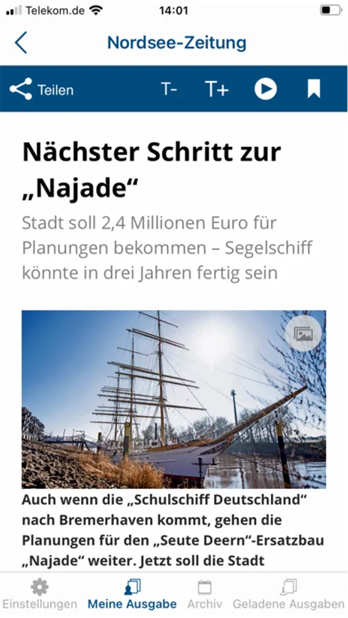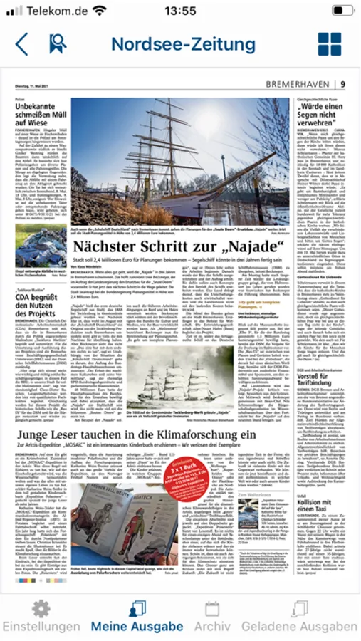 Als Tageszeitung für Bremerhaven und den Landkreis Cuxhaven informiert die NORDSEE-ZEITUNG von Montag bis Samstag über die Geschehnisse in der Region und aus aller Welt.