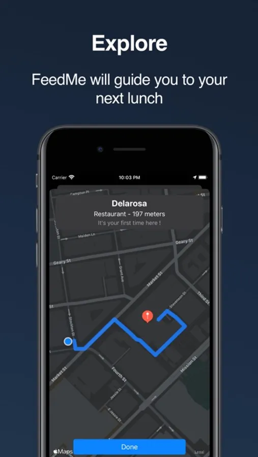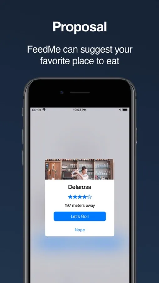 FeedMe, the application that facilitate all your lunches. Whether it is at work or at home, you just have to launch FeedMe and let you suggest a nearby restaurant. You can also easily see all the restaurants around you.