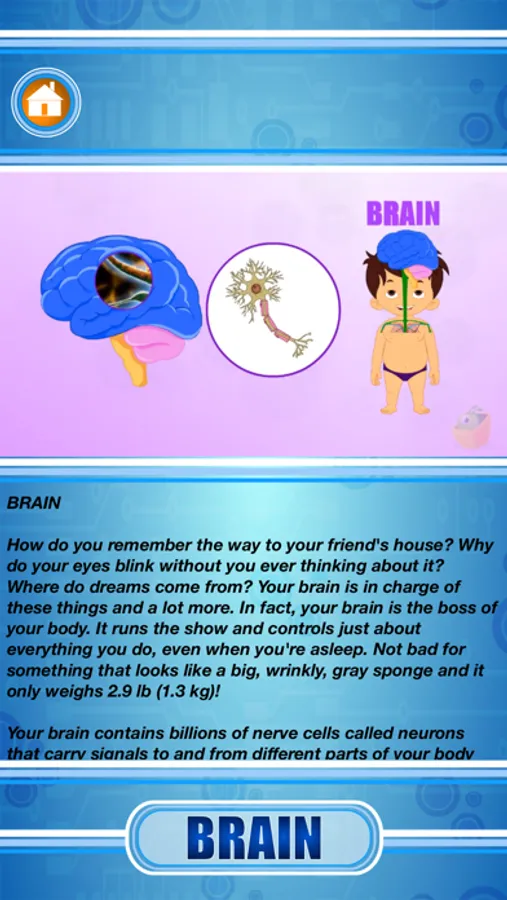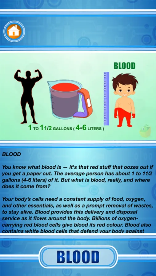 There is lot more than just learning basic facts about body. The app covers all important parts like.