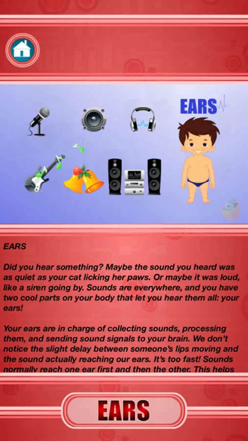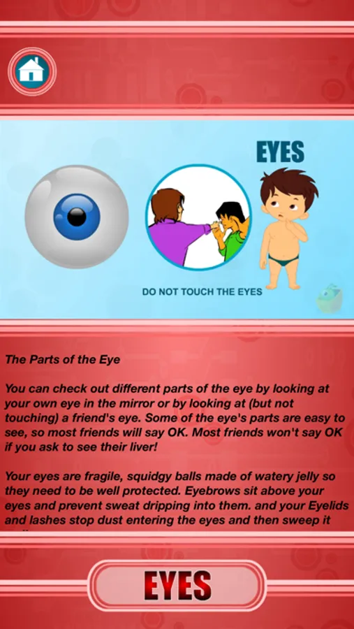 There is lot more than just learning basic facts about body. The app covers all important parts like.