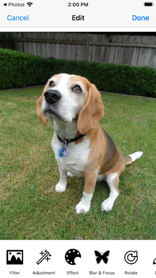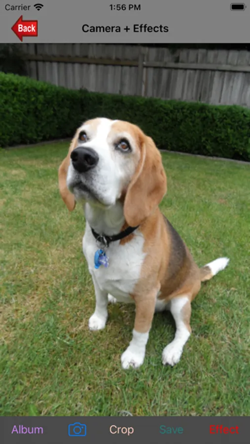 Camera+Effects - Take a photo using the camera or select one from the photo album. You can also crop the photo. There are 40 effects - Adaptive Threshold, Binary Pattern, Box Blur, Brightness, Bulge, Canny Edge Detection, CGA Color Space, Color Invert, Contrast, Emboss, Exposure, Glass Sphere, Grayscale, Half Tone, Haze, Hue, Laplacian, Monochrome, Pinch Distort, Pixellate, Polar Pixellate, Polka Dot, Prewitt Edge, RGB Dilation, RGB Erosion, Sepia, Sharpen, Sketch, Sobel Edge Detection, Sphere Refraction, Stretch Distortion, Swirl, Threshold Sketch, Tilt Shift, Tone Curve, Toon, Transform (2-D), Transform (3-D), Vignette, XY Derivative.