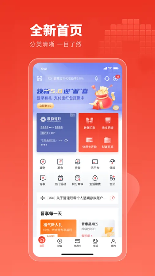 晋商银行手机银行5.0以服务客户为己任,打造以客户为中心、以数据为驱动的智能化手机银行,聚焦产品的开放化、智能化、情感化、精细化的手机银行服务体系,焕新升级为“工具+内容”的复合型产品。本次升级为分布式微服务,前端界面动态化楼层管理,支持灰度发布。完成了旅程重构、特色金融、场景生态、协同经营、安全守护五大方面的变革升级,为客户提供更轻简、更智能、更安全、更贴心的数字金融新体验。