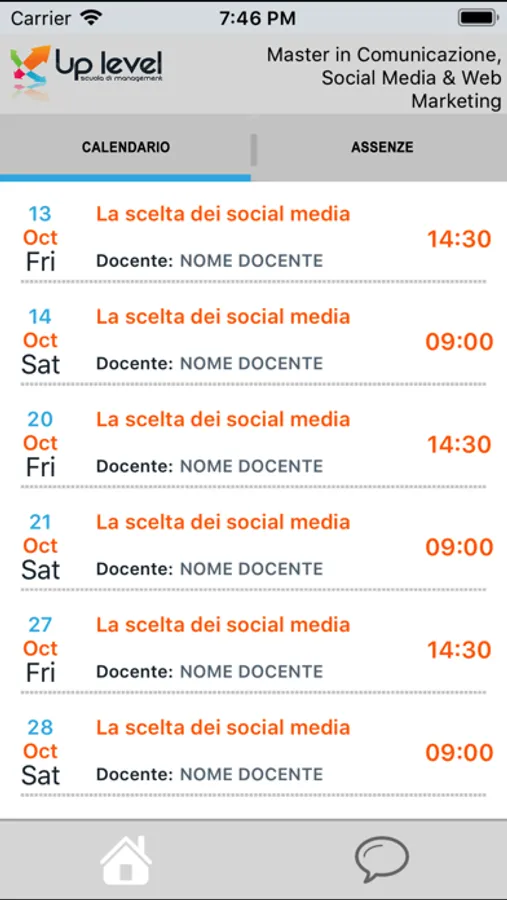 Per rispondere in maniera sempre più efficace alle esigenze dei suoi studenti e ampliare la gamma dei servizi offerti la Scuola di Management ha scelto di affiancare alla tradizionale offerta formativa anche la App di Up level creando un ambiente on line dedicato alla consultazione del calendario didattico, alla gestione delle assenze ed alle comunicazioni con i docenti.